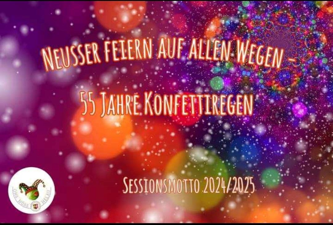 Auch in diesem Jahr gibt es in Neuss wieder ein neues Sessionsmotto. "Neusser feiern auf allen Wegen 55 Jahre Konfettiregen". Wir freuen uns jetzt schon auf die neue Session.